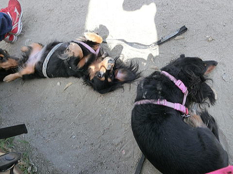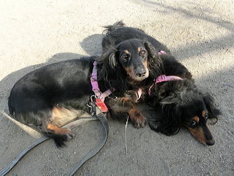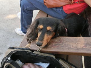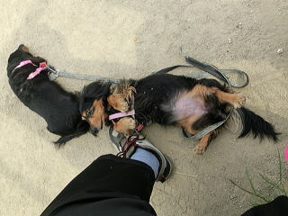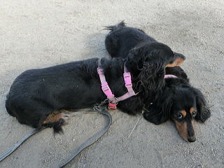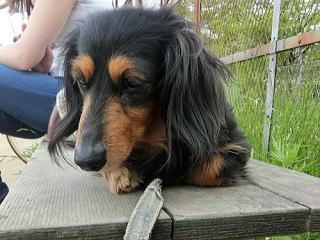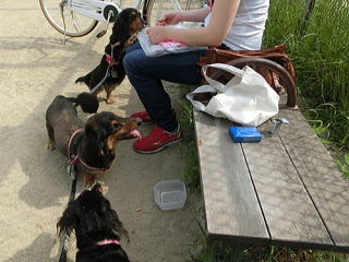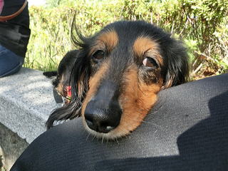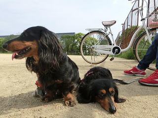 私の後ろでおまえは何してるのか?と思ったら、私を日よけ代わりにその日陰に座ってくつろいでて。別の日の散歩のときでもそうだけど、ときどき私を日よけにしていたの、知ってたよ。私の膝枕にまどろみ、ウトウトする・・・そんなおまえだったから私は、おまえを娘というより恋人だと感じていたんだ。