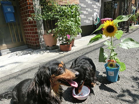 クロノコのおやつの看板娘のおまえたちの残暑お見舞いの写真を撮るのに、たった15分ぐらいのことだったけど、おまえたちにやけどや熱中症にさせないために、朝早く、しかも打ち水をガンガンにして地面を冷やし、それから地面が乾いてすぐに写真を撮り始めたんだったね。