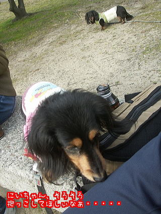 いつものように私の横にちょこんと座り、私とお姉さんの会話におまえも混じりながら、ジッとしていて少し寒くなってきたのか、鼻で私の足を突いて抱っこをせがんでいましたね。それを見ていたのこが、慌ててこっちにやってきて、おまえと私のあいだに割って入ってきて、結局抱っこしてもらえなかったんだったね。