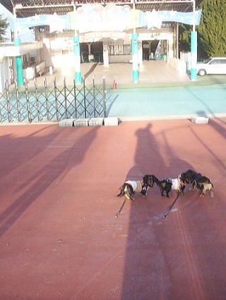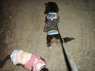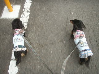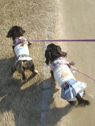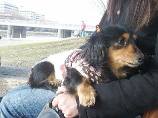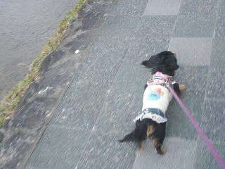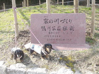 京都の鴨川は十条から下鴨神社まで歩く、今まで行った中でいちばん長い距離の往復20キロ。おまえは、いつものように前のほうを歩くお友だちと後ろを歩く私との間を行ったり来たりしていたから、30キロ近く歩いてたんだろうね。