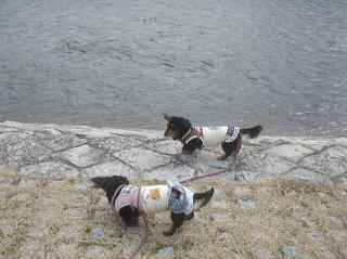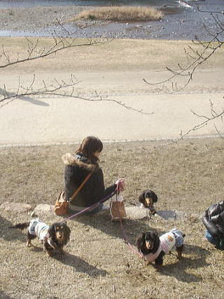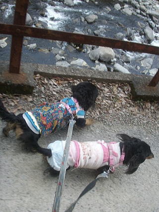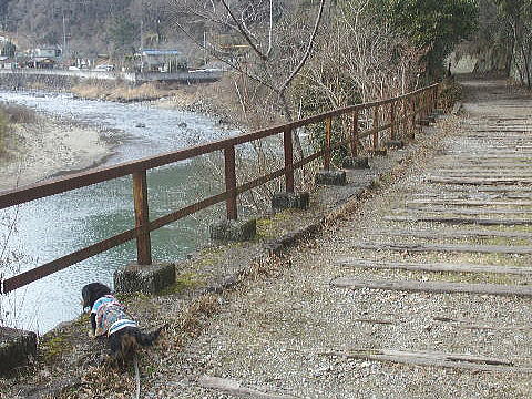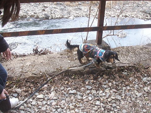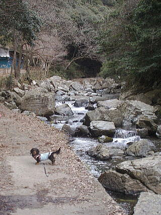 川がきれいで、本当は夏に連れて来てやりたかったんだけど、おまえたちが水、ニガテで、それに急流に流されては・・・と思ったんで、元気に歩ける冬に連れてきたんだよ。