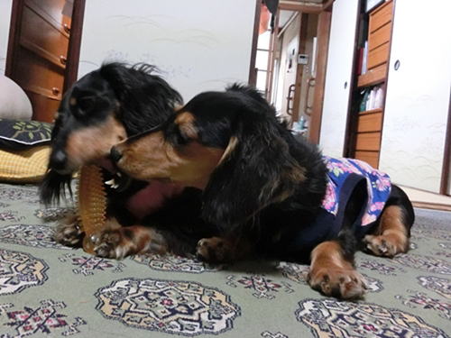 くろはほとんどしつけの要らなかった子で、非の打ち所のない、私にとっては申し分ないほどの子であっただけに、こくはほんと!たいへんです。たいへんですが、一歩でもくろに近づいてくれるよう、いっしょに頑張ろうと思っています。