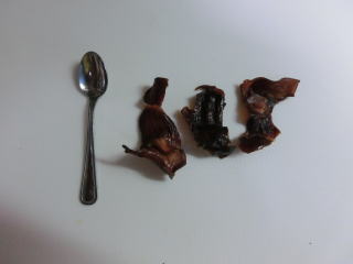 くろとのこのウマウマこめんと♪ ・・・嫌いな子はいないほど定番のおやつだよね。くろとのこも大好きです♪でもお日さまの照りぐあいや気温で仕上がりががらり!と変わってくるなかなかむずかしいおやつなんですぅぅぅ。夏場は日持ちしやすいよう強めに乾かして硬めに仕上げてるんだよ。 店主からのコメント ・・・ひとつの部分で肉厚な部分と薄い部分があるので、干すのにわりと手間がかかるおやつです。また新鮮で清潔な精肉業者ら仕入れたものでないと天日干しでは鮮度や雑菌の影響で腐敗するという、作業に最もデリケートさを必要とするおやつの一つです。また湿度も嫌い数日間はカラッと晴れないと作業ができません。 スタンダードなおやつなだけに、全ステージで食べることができます。 |
