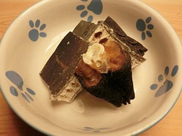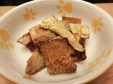![]() 津軽アブラツノザメむねなんこつ ・・・40g入り/500円 青森県県内水揚げ・津軽海峡産 津軽海峡で獲れたアブラツノザメのむね軟骨のおやつです。わりとしっかりした硬さはありますが、それでもヨシキリザメ中骨ほどの硬さではないので、小さな子からシニアまでバリバリ食べることができます 詳細(内容量・カロリーなど) |