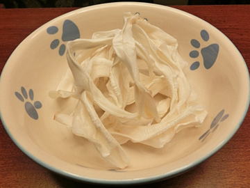 ![]() 気仙沼ヨシキリザメなんこつ (お肉・皮付き) ・・・4コ入り/650円 宮城県気仙沼市内漁港水揚げ たいへん高価なヨシキリザメの中骨軟骨のお肉付き・皮付きになります。4コで約65〜70gあります。比較的硬さと大きさのあるおやつですので小・中型犬では時間を掛けてゆっくり食べるおやつです。 詳細(内容量・カロリーなど) |