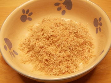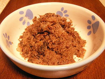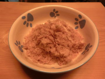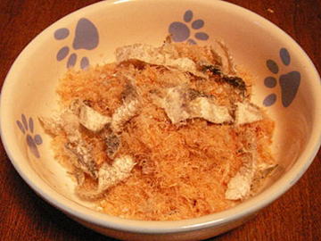 「おさかなのふりかけ」と「おにくのふりかけ」を混ぜると、保存的にも、嗜好性においても良くありませんので、必ず別々にしてお与えください。